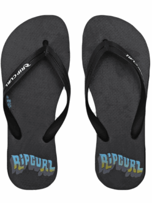 Chinelo Masculino Rip Curl The Search Logo branco com tiras pretas. Chinelo de dedo com solado emborrachado antiderrapante. Tiras de borracha.