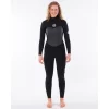 Roupa de Borracha Long John Manga Longa Feminino Rip Curl Flashbomb E6 Selado 3/2 mm Zíper na Frente Preto – Tam. 4/PP
