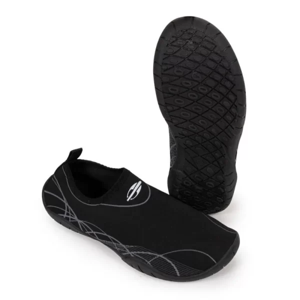 Solado de borracha antiderrapante e parte superior em spandex, oferece proteção, aderência e um ajuste perfeito aos pés com design esportivo. Segurança e estabilidade, evitando escorregões e quedas durante a prática esportiva. Reveste todo o pé com um material confortável, lavável e resistente, garantindo durabilidade e higiene.