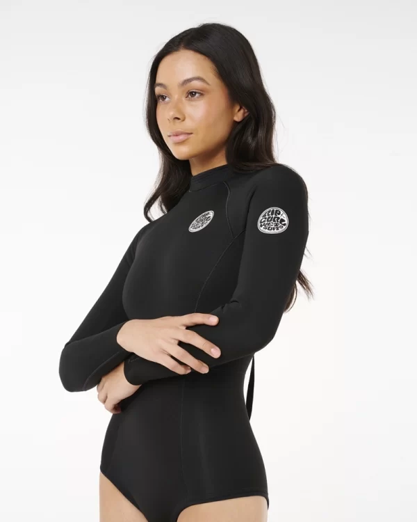 Short John Feminino Rip Curl G-Bomb E5 1.5mm Manga Longa Zíper nas Costas – Preto – Tam. G