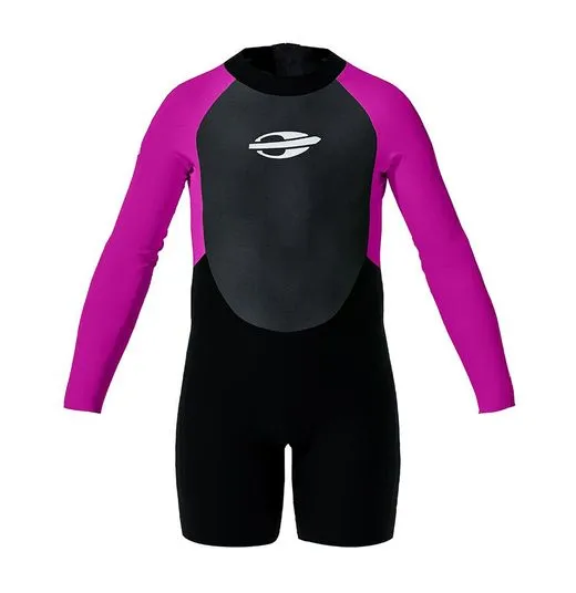 Short John Infantil Mormaii Manga Longa Budline Unissex Backzip – Preto/Rosa – Tam. A12